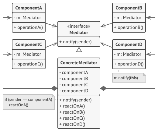 | 易于复用:组件可以在不同中介者下工作 |