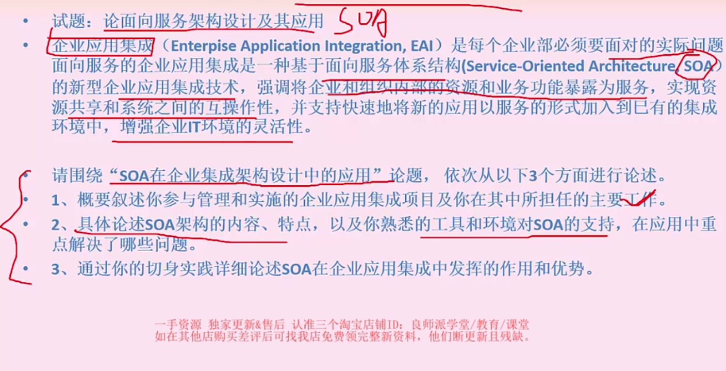 - 重点掌握架构风格、设计模式、SOA、安全等